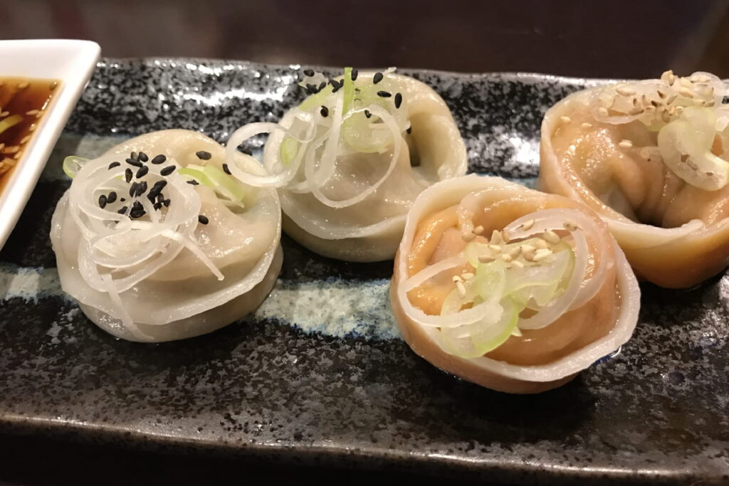 日本の餃子は、サイズ小さめで食べやすく、薄い皮とジューシーな具材が特徴です。
